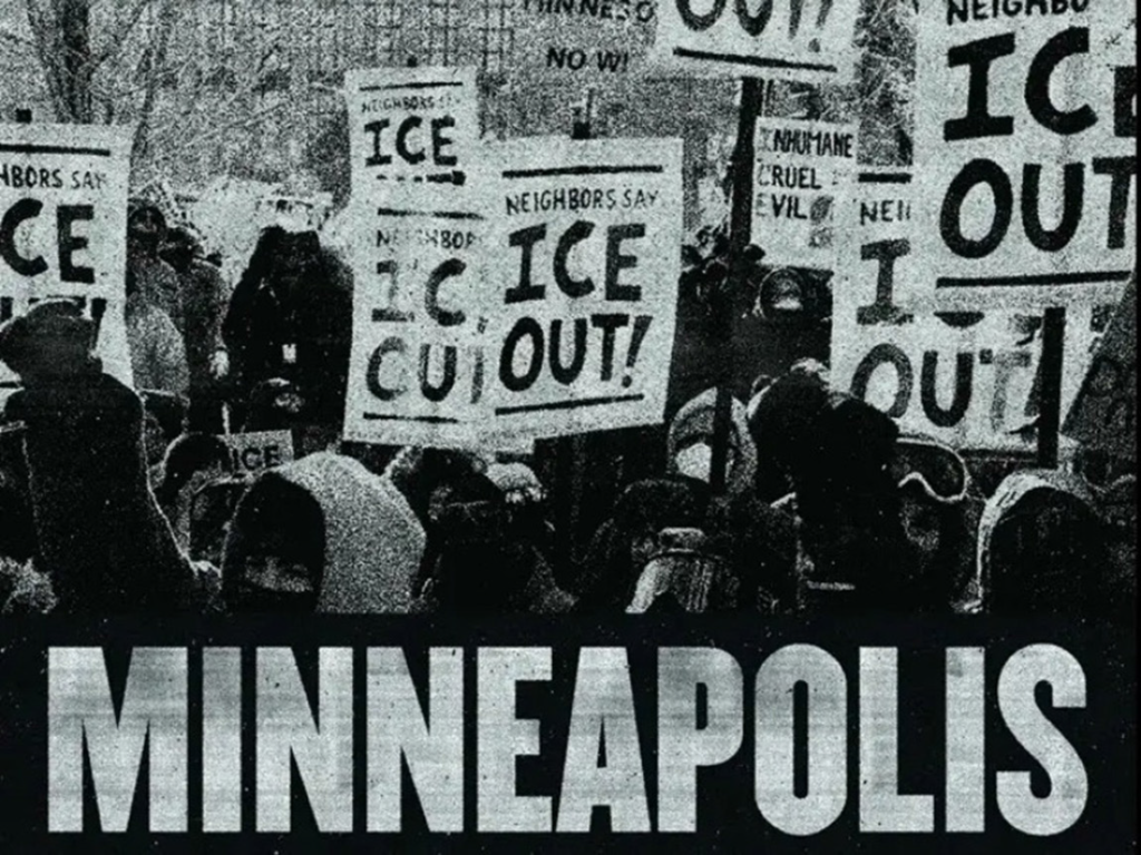 Luego viene el eslogan, la fórmula colectiva, el estribillo: «ICE out now- Fuera ICE”. Es la parte más sencilla y poderosa. Simplemente porque no necesita explicación. Poderoso porque no nace como una opinión individual: nace como un grito callejero. Es el sonido de una comunidad que intenta encontrar un rumbo mientras todo se desmorona: «el corazón y el alma de nuestra ciudad resisten». Y resistir, aquí, no es heroísmo. Es resiliencia. Es permanecer humano en una escena inhumana. Es no es dejar que el miedo se convierta en identidad.