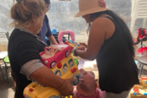 Como hemos hecho en los últimos años, decidimos hacer el agasajo de navidad en uno de estos barrios afectados por los incendios, preguntamos al párroco local y con el consejo parroquial nos aconsejaron hacerlo en el barrio Bolaños. Pedimos ropa a nuestros amigos para hacer un bazar en el lugar; la acogida de la gente fue muy buena, como siempre, y nos llegaron muchísimas cosas, ropa, juguetes y artículos para el hogar.