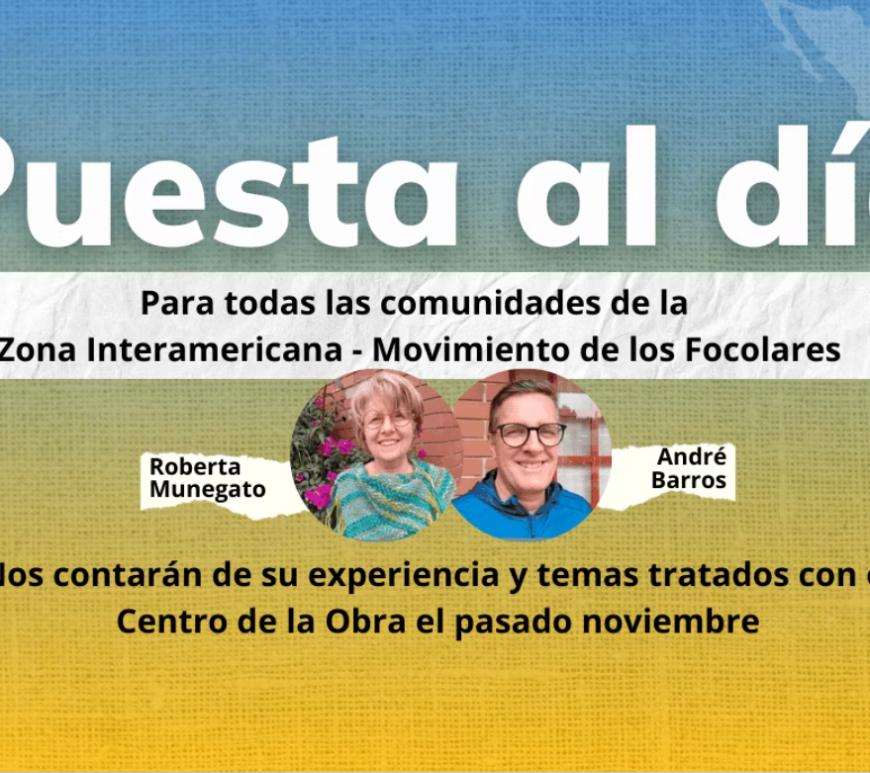 El domingo 26 de enero se realizó la Puesta al Día (Aggiornamento) de la zona interamericana del Movimiento de los Focolares, evento transmitido a las comunidades locales de la región a través de más de 300 puntos de conexión. Continue reading Puesta al Día con Roberta y André, más de 350 puntos de conexión de Bolivia a México y pasando por el Caribe