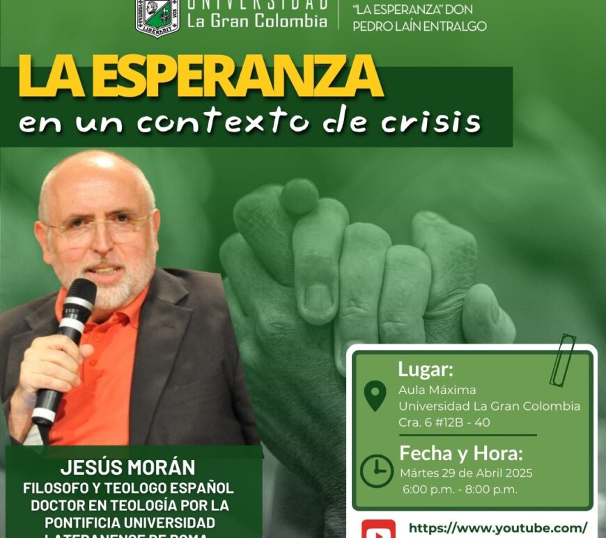 esús Morán, filósofo y teólogo español, doctorado en teología por la Universidad Lateranense de Roma, ofrecerá la conferencia La Esperanza en un contexto de crisis, invitado por la Universidad La Gran Colombia y su Centro de Pensamiento “La Esperanza” Don Pedro Laín Entralgo, en Bogotá, Colombia. Continue reading La Esperanza en un contexto de crisis: Jesús Morán