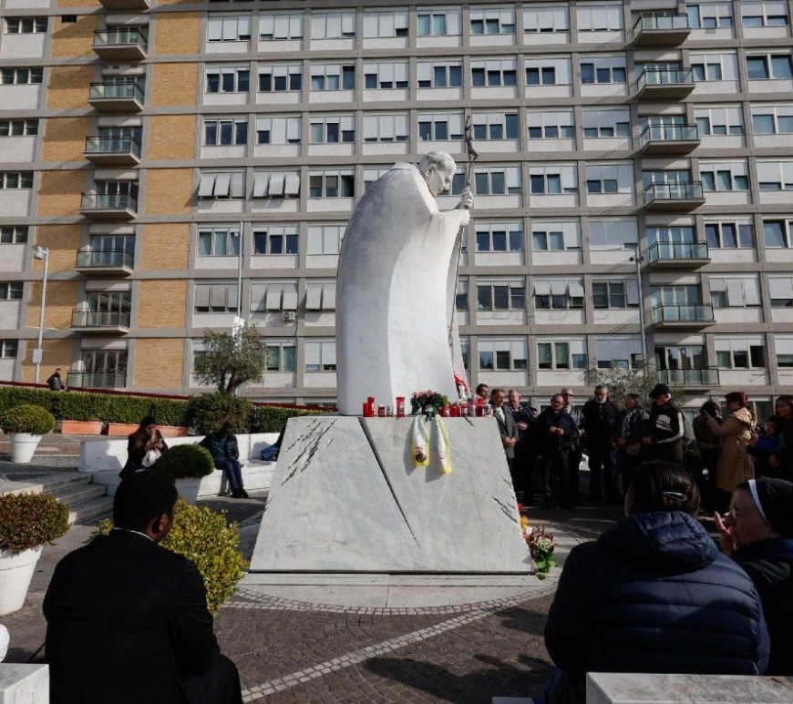 «El estado del Santo Padre sigue siendo crítico; sin embargo, no ha vuelto a tener crisis respiratorias desde anoche. Se sometió a las dos unidades de hematología concentrada con beneficio y un retorno del valor de hemoglobina. Su trombocitopenia se ha mantenido estable; sin embargo, algunos análisis de sangre muestran una insuficiencia renal inicial, leve, que está bajo control. Continúa la oxigenoterapia de alto flujo a través de cánulas nasales. El Santo Padre continúa vigilante y bien orientado. La complejidad del cuadro clínico, y la espera necesaria para que las terapias farmacológicas den algún resultado, hacen que el pronóstico siga siendo reservado. Durante la mañana, en el piso habilitado en la 10ª planta, asistió a la Santa Misa, junto a quienes le están cuidando durante estos días de hospitalización». Continue reading La Oficina de Prensa de la Santa Sede: “La noche ha transcurrido bien”