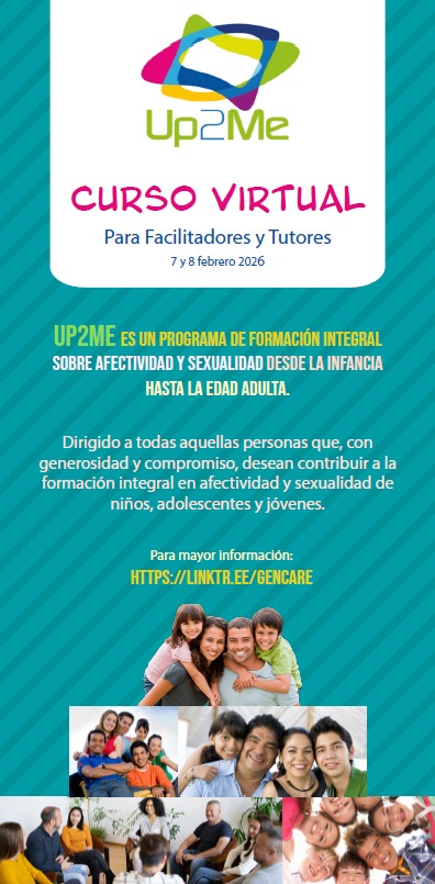 • Este curso tiene como finalidad formar tutores y facilitadores para los distintos programas del proyecto Up2Me, dirigidos a grupos familiares, niños, adolescentes y jóvenes. La formación está orientada a preparar personas adultas que deseen acompañar estos procesos educativos desde una perspectiva relacional y experiencial.