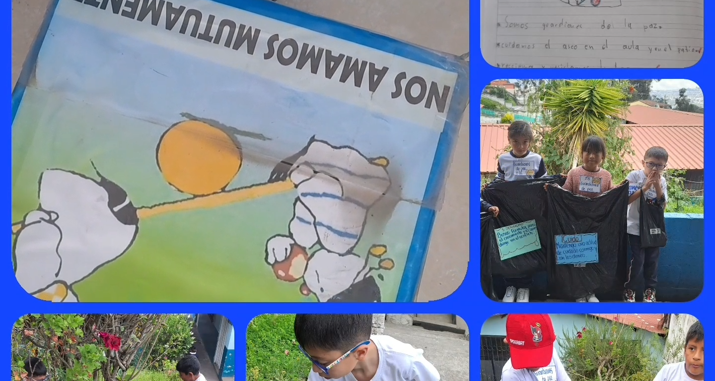 Alumnos de tercero de básica GUARDIANES DE PAZ de la escuela Leonor Stacey de Ecuador, trabajan desde el aula acciones que pondrá en práctica en esta semana cuidando los patios, jardines y los espacios de los del bar  recogiendo basura, cuidando que se mantenga la paz, para de esa manera dar ejemplo de amor y cuidado de los espacios en la escuelita.