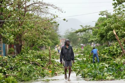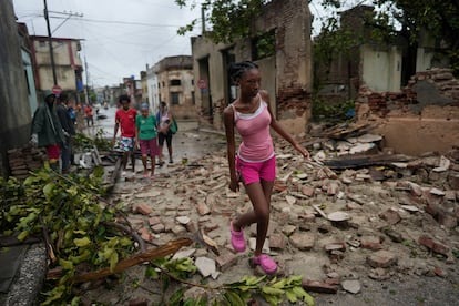 Vecinos de Santiago (Cuba) caminan entre los estragos del huracán.