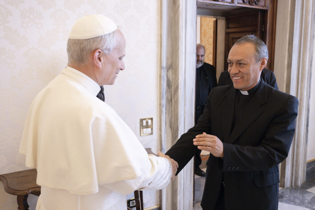 En la tarde del 15 de mayo, en la biblioteca del Palacio Apostólico del Vaticano, el Papa León XIV recibió en audiencia al Cardenal Jaime Spengler y a Mons. Lizardo Estrada, presidente y secretario general del Consejo Episcopal Latinoamericano (Celam), respectivamente, “ocasión en la cual le reiteraron el saludo de felicitación, agradecimiento y la alegría del episcopado latinoamericano y caribeño por su reciente elección, al tiempo que renovaron el compromiso de apoyo y colaboración a su misión como sucesor de Pedro”.