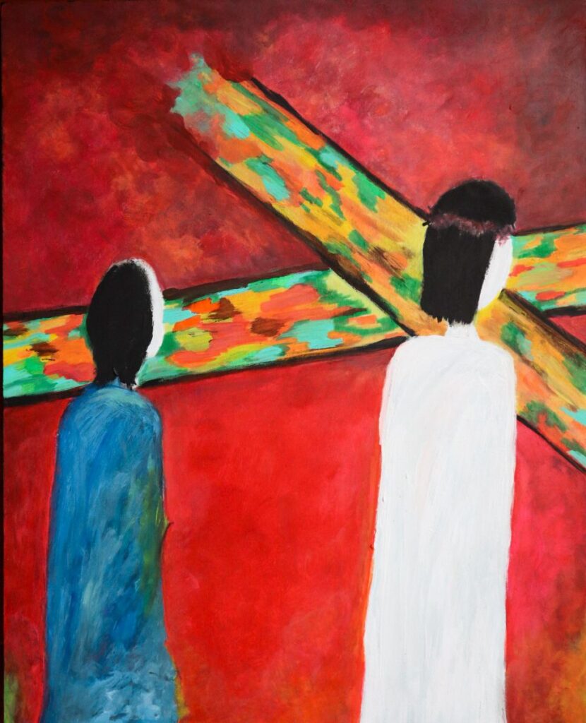 Colores vibrantes expresión de la tierra y el pueblo que somos, que Jesús asumió hasta dar la vida! Un llamado nuevo a cada uno para tomar nuestra cruz.. tal vez nuestro hermano sea nuestra penitencia, la convivencia fraterna, el habitar corresponsable o el trabajo por la paz y la justicia. El padre estaba muy contento, que era como él lo había pensado…En el aquí y el ahora, artistas o no, todos podemos hacer nuestra mejor obra de arte: amarnos unos a otros, como EL nos amó, con el gusto de María, como nos recuerda Chiara Lubich!