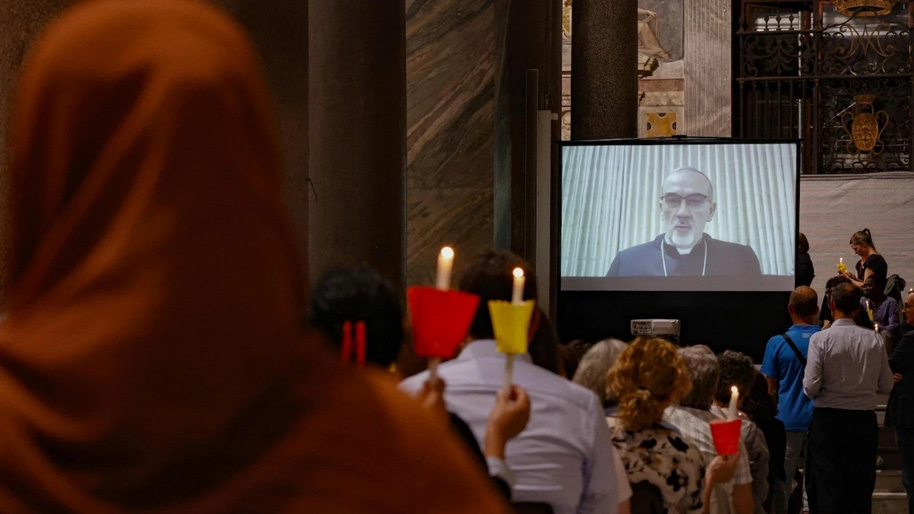 La vigilia, fue organizada en respuesta al llamamiento urgente del papa León XIV, quien en los últimos días había pedido un alto el fuego inmediato, la liberación de los rehenes y el estricto cumplimiento del derecho internacional humanitario.