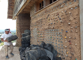 En 2009, a través de una ONG norteamericana conoció y trabajó la técnica del reciclaje. Desde entonces, con voluntarios que llegan de otros países han construido escuelas, salones, canchas deportivas, casas, estufas para economizar la leña, en varias comunidades del país.