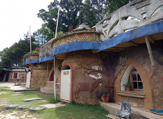 Una de obras que describe la utilidad de esta técnica es la escuela Ténico Chi Xot, de Comalapa que inició con unas aulas para niños de nivel primario y hoy tiene grados de educación secundaria. El terreno de barrancas, donde está construida fue acondicionado utilizando tierra del lugar y llantas (neumáticos de autos) a manera de pared de contención, toda la estructura de la institución es de material reciclado.