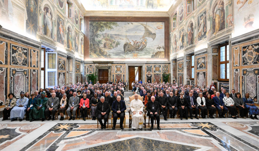 Un momento especialmente significativo, cuando se refirió al momento histórico que está atravesando el Movimiento. El Papa León XIV recordó: «a ustedes se les ha confiado la responsabilidad de mantener vivo el carisma de su Movimiento en la fase posfundacional», una fase que no termina con la generación inmediatamente posterior a la fundadora, sino que «se prolonga más allá». Invitó al Movimiento a distinguir con lucidez y honestidad lo que pertenece al núcleo esencial del carisma de lo que, con el tiempo, puede cambiar. Dijo con claridad que es necesario discernir «qué aspectos de su vida común y de su apostolado son esenciales, y por lo tanto deben mantenerse» y «qué instrumentos y prácticas, aunque usadas desde hace tiempo, no son esenciales para el carisma… o han presentado aspectos problemáticos y, por lo tanto, tienen que abandonarse».